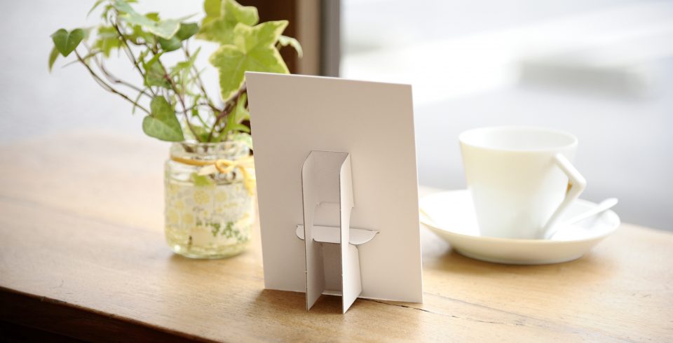 紙脚付スタンド型は背面に紙脚を付けたスタンダードなタイプです。片面のみの情報量なので、レジ横や壁際の設置に適しています。