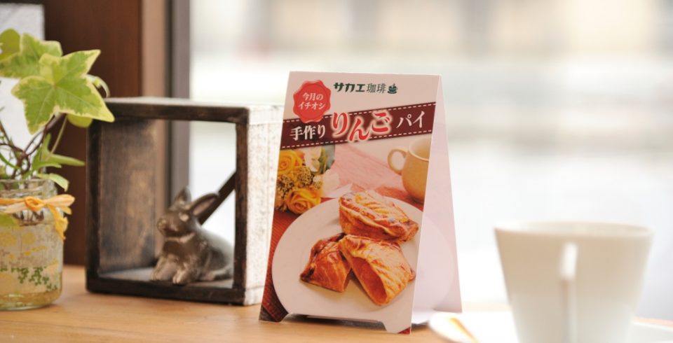 卓上スタンドPOPは情報量を多く載せることができるので、その商品の説明やPRポイント、価格などを載せておけば立派な営業ツールになります。 飲食店ならテーブル、お店ならレジ横などに設置すれば自然と目に飛び込んでくるので訴求効果抜群。