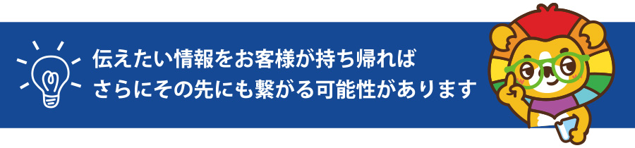 伝えたい情報をお客様が持ち帰ればさらにその先にも繋がる可能性があります