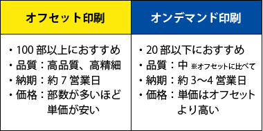 印刷は、通常のオフセット印刷、オンデマンド印刷によるフルカラーの印刷から、特定の色を選び1色で印刷する特色印刷、5色印刷などもお選びいただけます。DICやPANTONEによる色指定も対応しております。