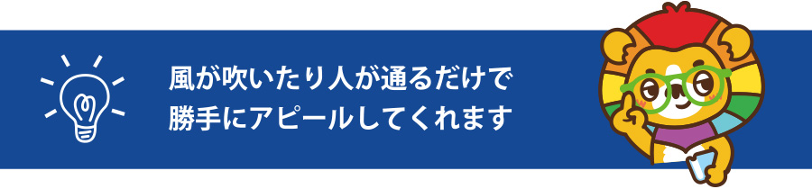 風が吹いたり人が通るだけで勝手にアピールしてくれます