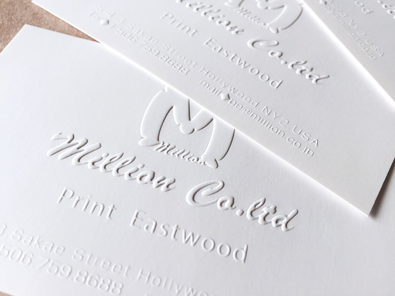 紙より上に出す加工が「エンボス」、下に凹ます加工が「デボス」と呼ばれています。