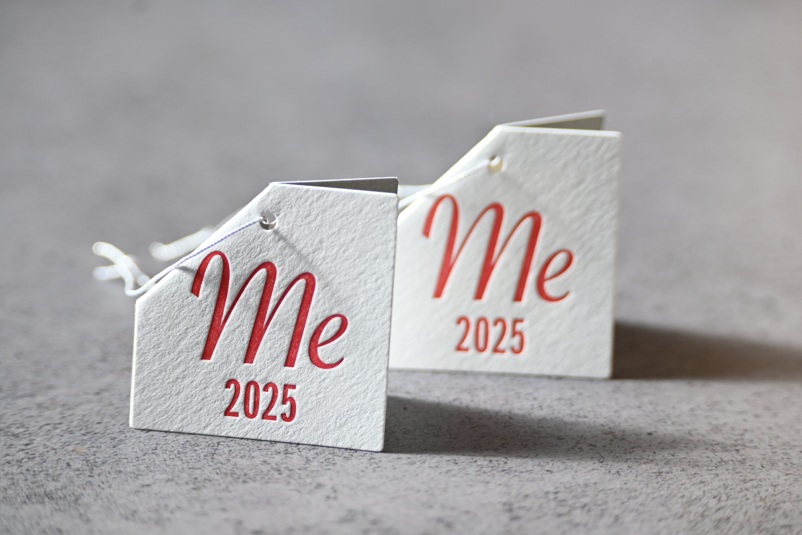 エンボス加工は別名浮き出し加工ともいい、マグネシウム製の凹版と樹脂製の凸版の1セットを用いて紙面に凹凸をつける加工です。 紙より上に出す加工を「エンボス」、下に凹ます加工を「デボス」といいます。