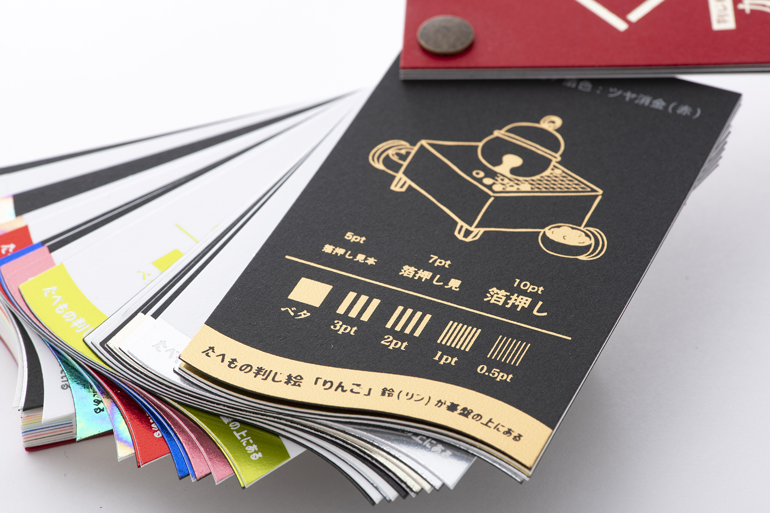 エンボスや箔押し、活版やパチカなどの特殊加工を綴じた見本帳です。デザインをする上でイメージしやすくなりますのでぜひご活用ください。