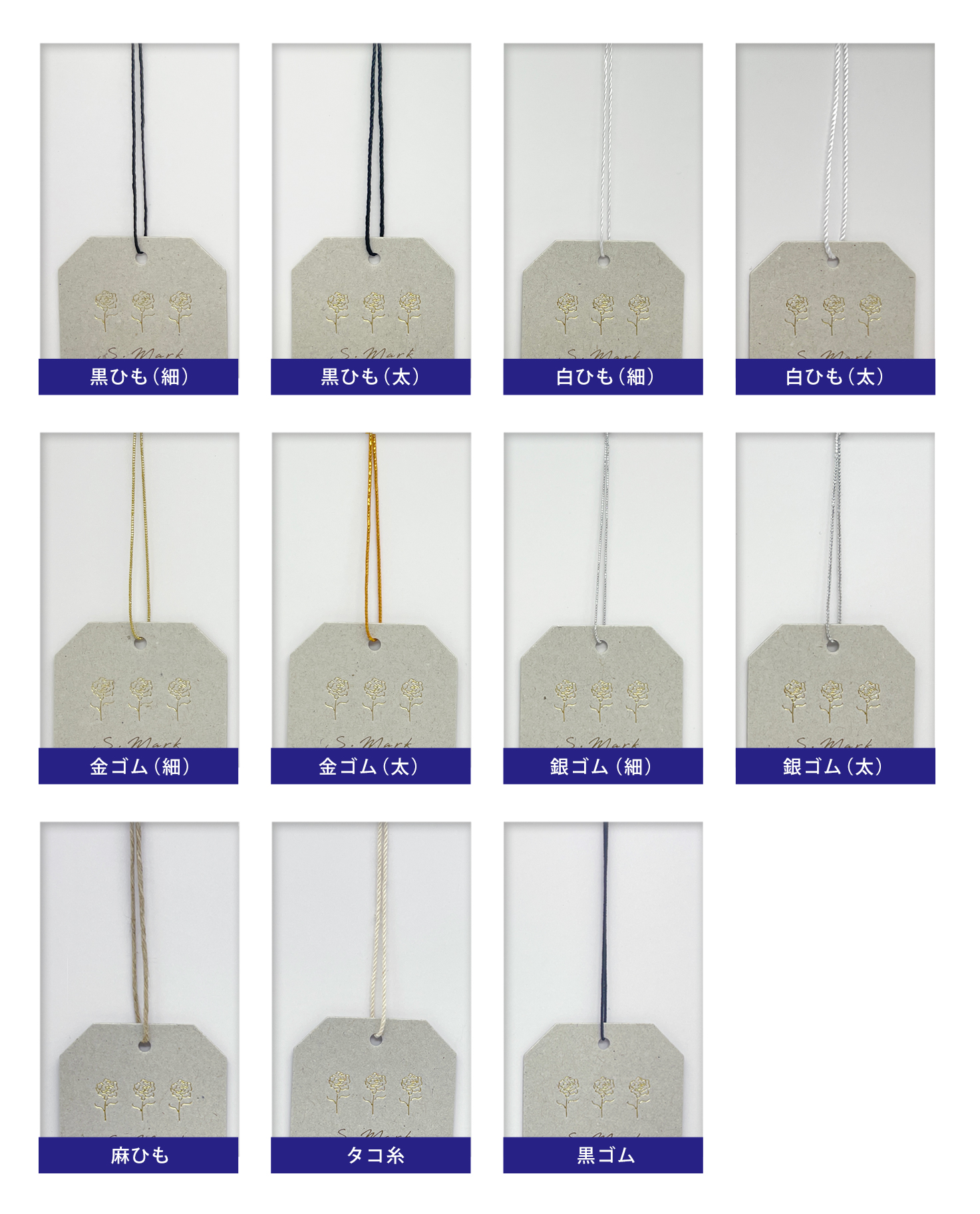 商品とタグを結びつけるひもはあまり目立たないように見えて、色や素材をちょっと変えるだけでその印象はがらりと変わります。
