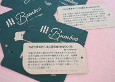 実際に、商品や下げ札・タグを手に取った時に印象付ける要素が紙です。通常の紙の場合は、厚さがあり光沢があるもの光沢がないものなども多くありますが、手触り感を感じる紙を使用することで、やさしい印象を与えることもできます。また、紙本来が持っている色もあり、クリーム色や特定の色を持った紙を選ぶことで、印刷でつけた色とはまた違った印象や味わいを持たせることが可能です。下げ札で使われる紙の厚みは一般的には180〜225kgあたりですが、特に決まりはありませんので紙質やイメージに合わせてお選び下さい。
