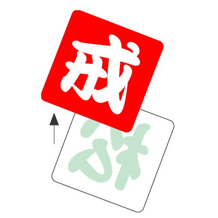 まず裏面がグレーのシール(ミラーコート訂正用)に赤1色で「戒」の文字を印刷をします。