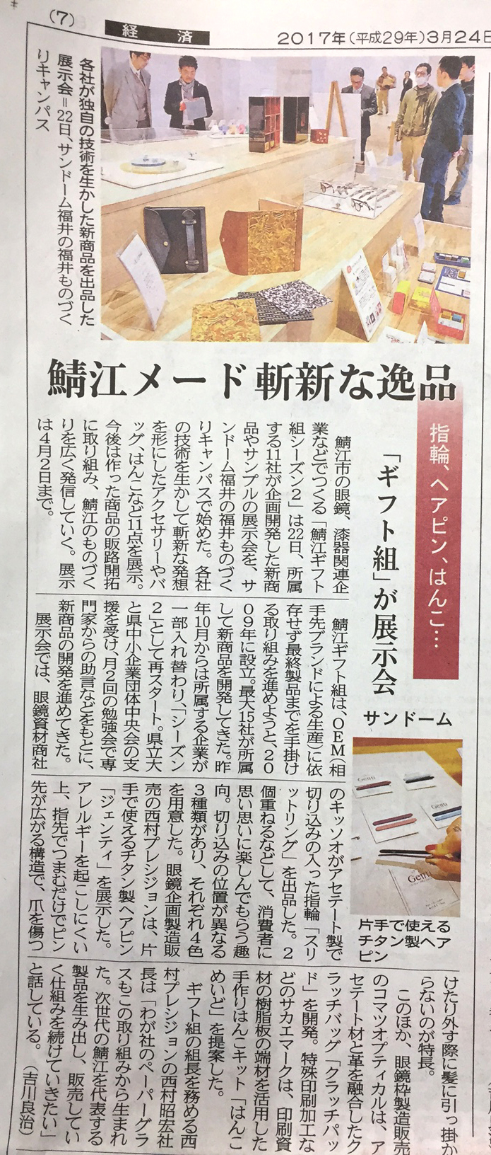 本日の福井新聞にも掲載されました!