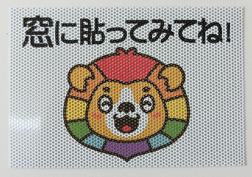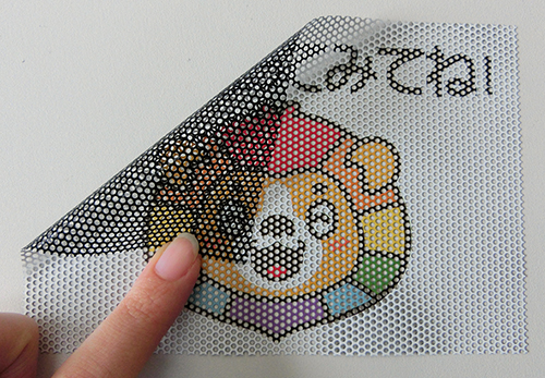外側から見ると広告、内側から見ると景色が透過して見えるという特殊なフィルムです。車のリアウィンドウやショーウィンドウにいかがでしょうか?