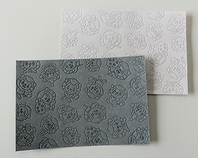 今回使用したOKフロート紙やOKムーンカラー紙は、熱を加えると色が変わる不思議な紙です。エンボスのような感触と色変化が同時に表現できて、一粒で2度美味しい……というお得な感じです!