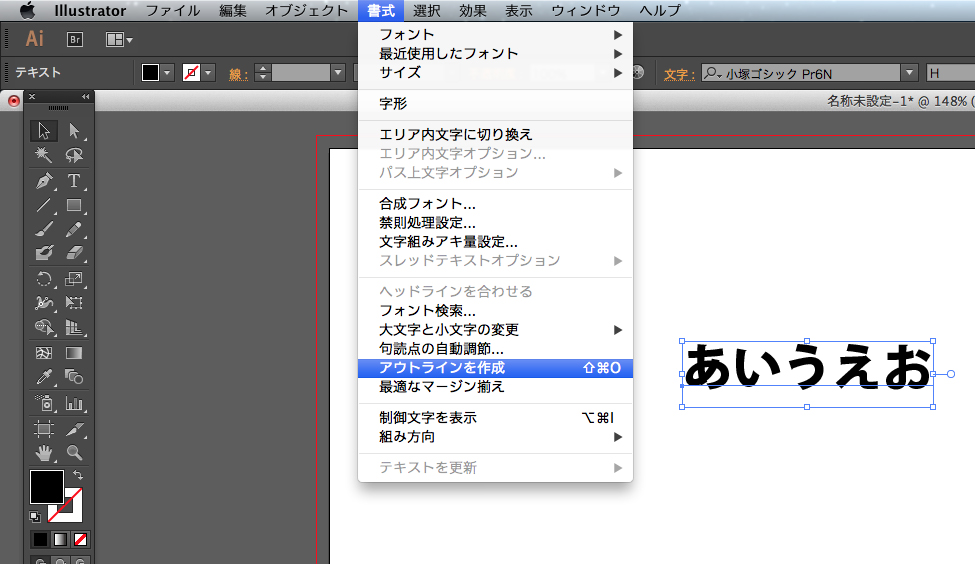 たまに一部だけアウトライン忘れをされる方がいらっしゃいますのでコマンド+A(Windowsの場合はCTRL+A)ですべてを選択してからアウトライン処理を行ってくださいね。
