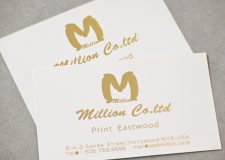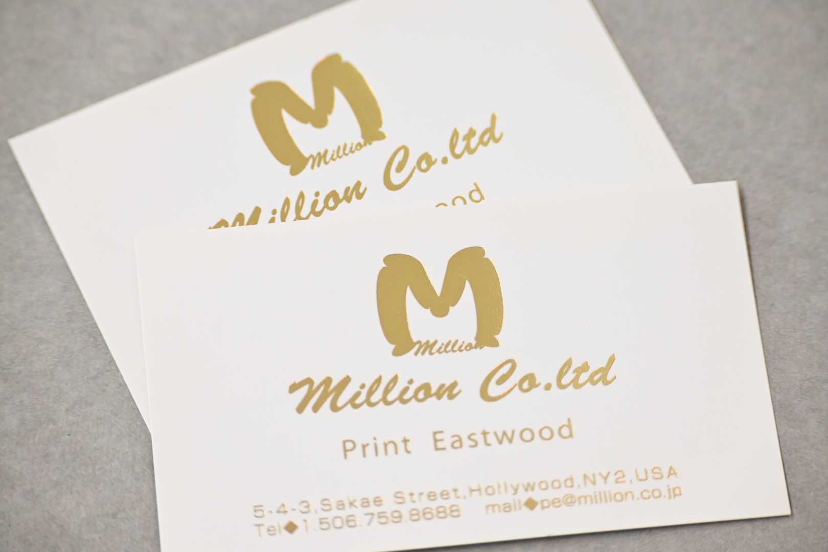 特Aクッションにマット黒箔押し加工を施したサンプルです。柔らかな素材感の特Aクッションとマット箔の相性は抜群!箔押し加工の過程で生まれる紙の凸凹加減も、デザインにいい味を出してくれます。