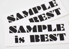 当社のテンプレート(ST-01)を使用したサンプル下げ札です。アストルT225kgに2色印刷のベーシックな仕上げでコストも抑えることができるので大量生産にオススメです。