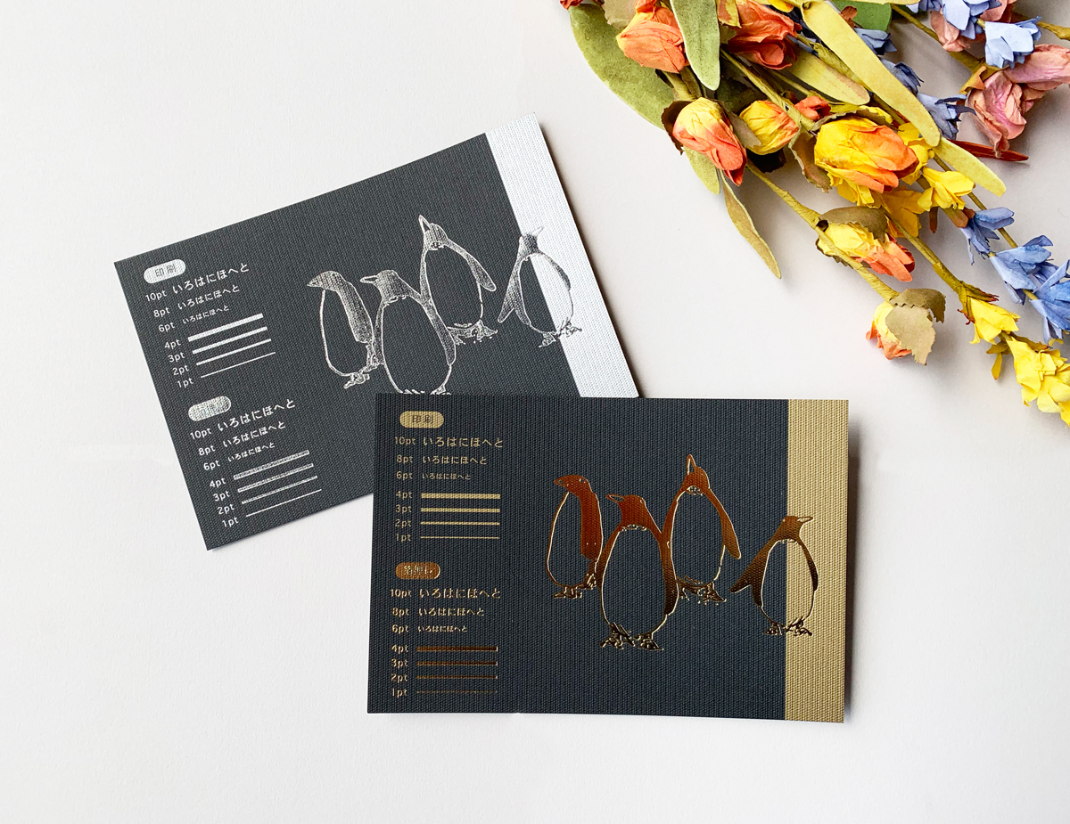 表面がしっとりとしたTOマットNの用紙にゴシック体・明朝体・ベタ・線を数種類エンボス加工しました。