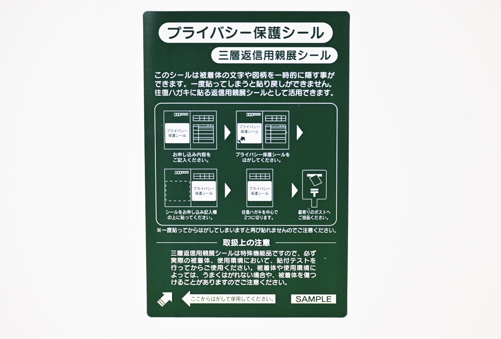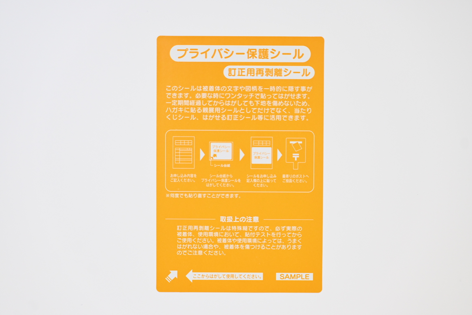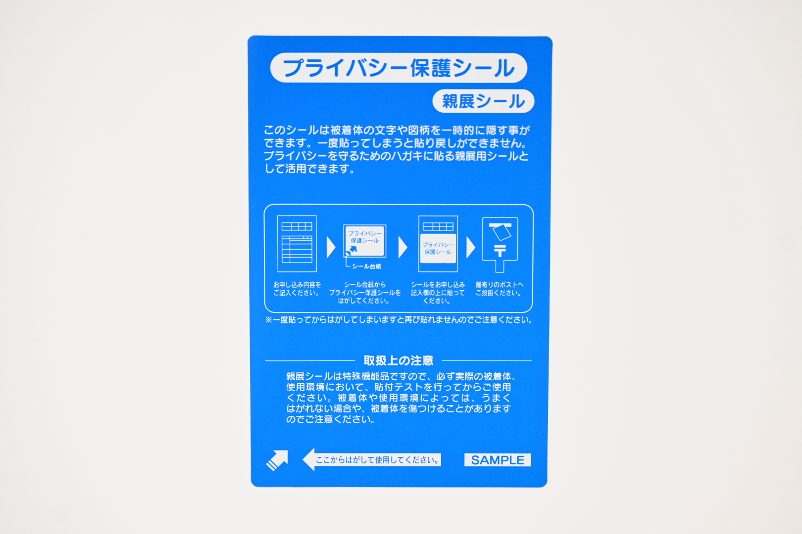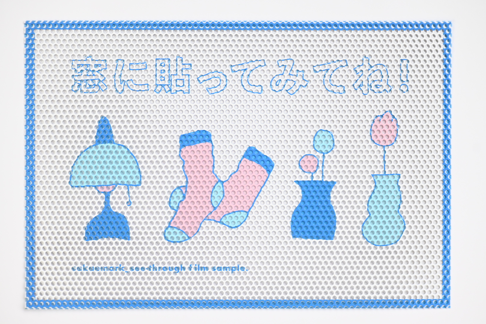 ハガキサイズの外貼り用シースルーフィルムのサンプルです。貼り方の説明書と一緒にお送りするので、実際の見え方を確認したい方におすすめです。(デザインは写真と異なる場合がございます。)