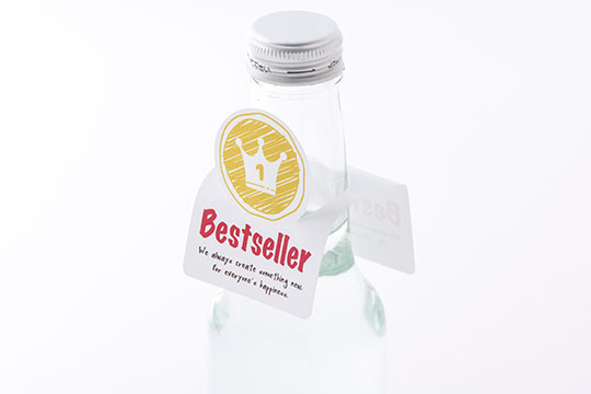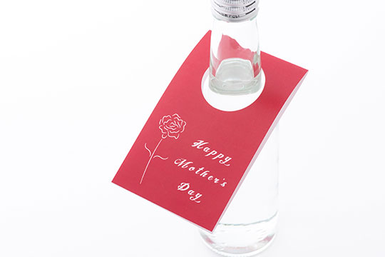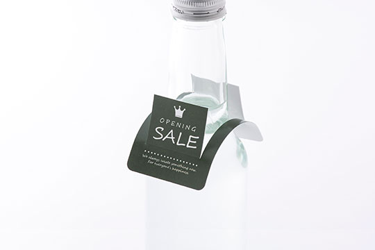 当社のテンプレート(KP-06)を使用したボトル用の首かけPOPです。
