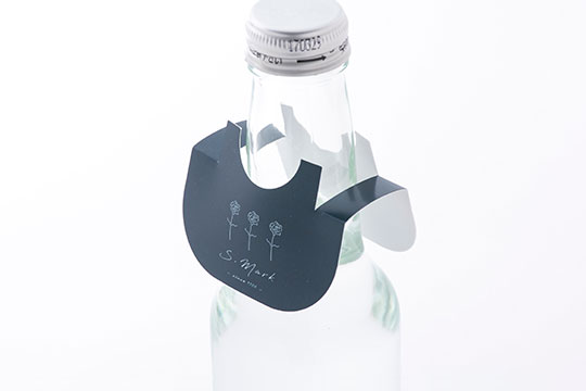 当社のテンプレート(KP-04)を使用したボトル用の首かけPOPです。