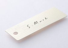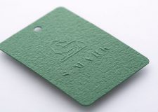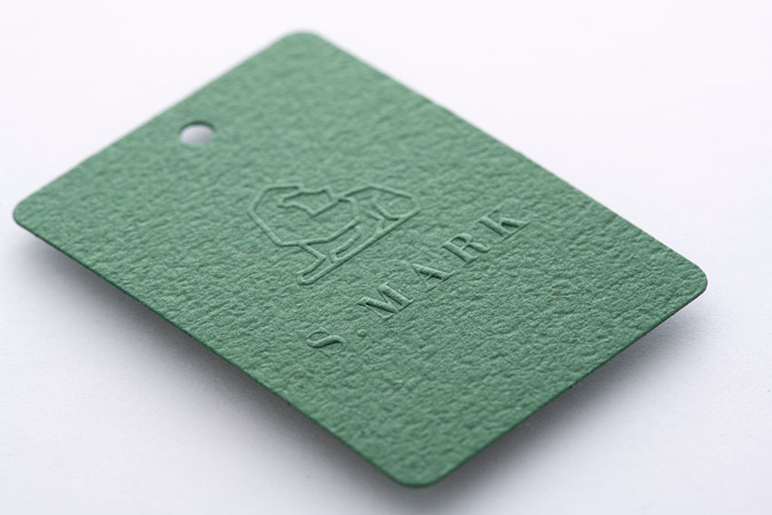 当社のテンプレート(ST-03)を使用したサンプル下げ札です。TANTO180kgの特殊紙から色を選び、エンボス加工のみで仕上げました。