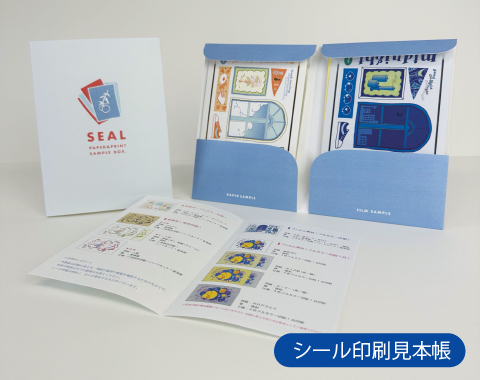 弊社で取り扱いをしている主なシール用紙を使用した、印刷&箔押しの見本セットです。